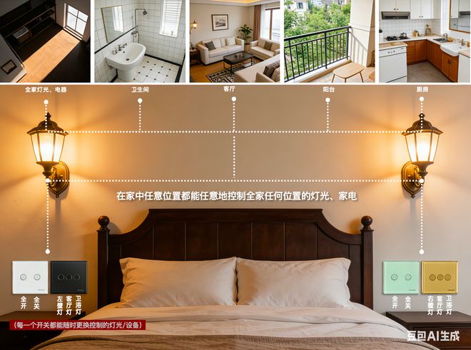 强大联动:“一只开关改变世界”,可以用智能开关控制家中所有电器。搭载魔盒,可通过云平台手机终端实现远程控制与更加个性化的自定义设置。搭载总控开关,实现进门自动通电与灯光、空调等设备的自动开启;实现离家后设定电器自动断电,保障家庭安全。
